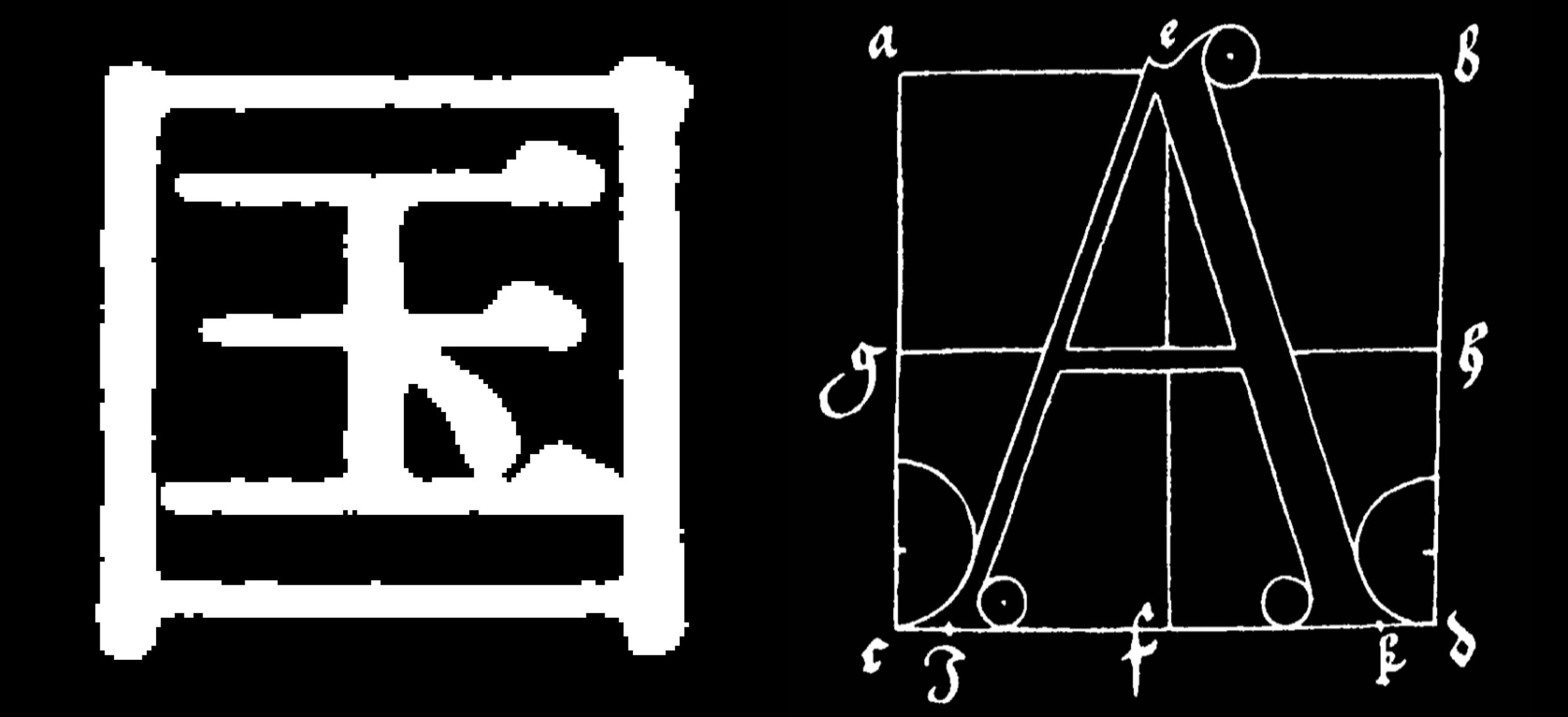 In my attempt to find a new method for aligning Latin serif letterforms with Ming, I set out from the observation that both scripts underwent historical processes of rationalisation when they transformed from calligraphy to more geometric modulation. Looking at these transformations in parallel, I assumed, might help to detect some features that became common in both scripts at a certain time. Highlighting such features would then allow to develop Latin letterforms that share with Ming some of their visual parameters and parts of their visual atmosphere, including cultural connotations.