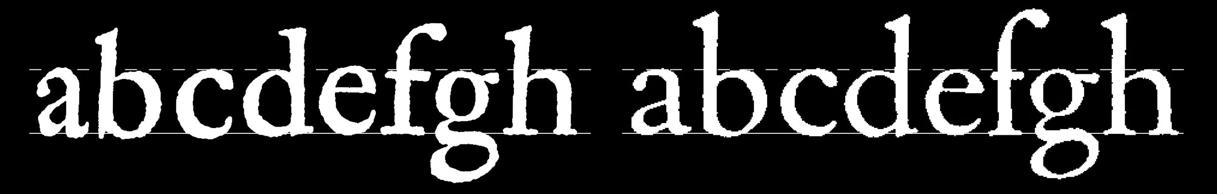 In modern revivals, however, the ascenders were often lengthened to fit the aesthetics of the early 20th century. An example for this can be found, again, in the Monotype revival of Van Dijck. In my typeface, I restored and synthesised the original proportions found in Fleischman’s and Kis’s work, to create a more visually balanced appearance when set alongside the Ming style.