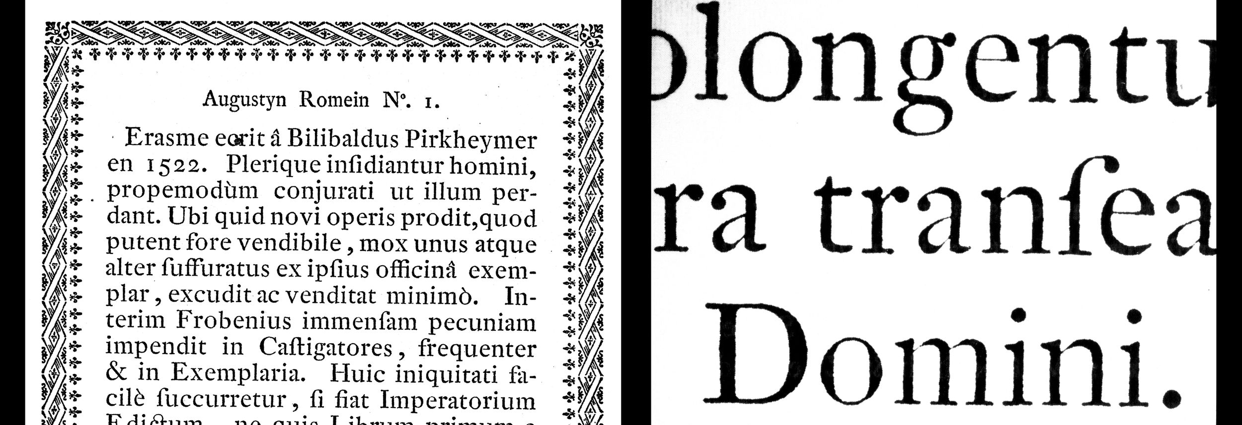 Typical Baroque extender length in Van Dijck (left), and altered according to early 20th century tastes in a Van Dijck revival by Monotype (right).