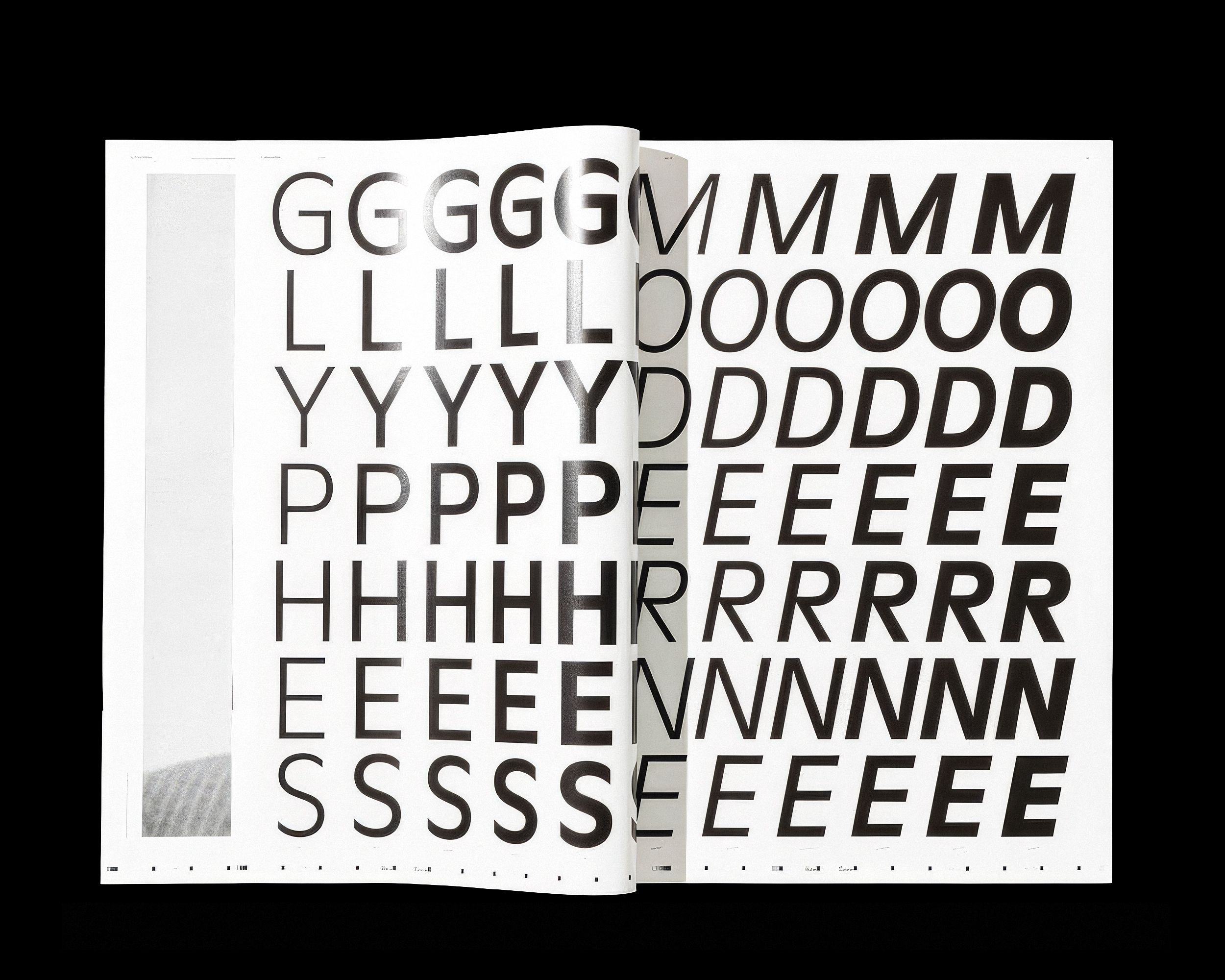 The type specimen was produced by Robert Huber for the presentation of the LL Moderne typeface at the Swiss Design Awards, where the jury selected it as one of this year's winning entries. Conceived as a set of large-format posters, it shows off all cuts of the typeface, in various settings, from very big to extra small.